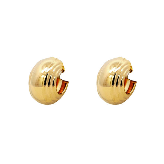 Estate Ribbed Huggie Earrings in 14K Yellow Gold