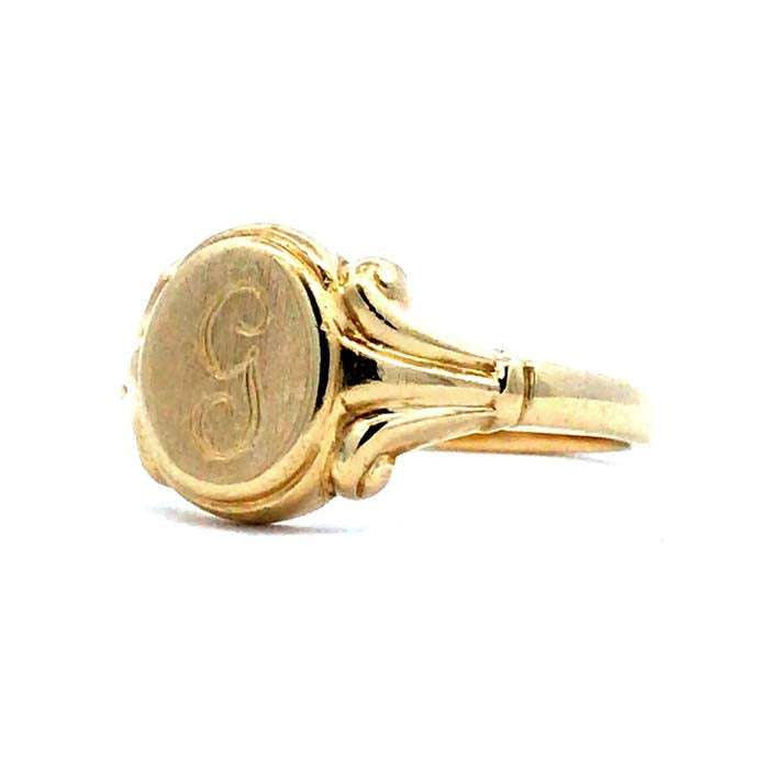 Estate Script “G” Round Signet Ring in 14K Yellow Gold