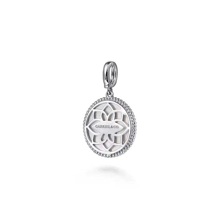 Gabriel & Co. 20mm Bujukan Mother of Pearl and Sapphire Compass Pendant