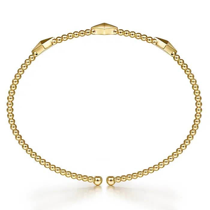 Gabriel & Co. "Bujukan" Bead Cuff Bracelet with Pyramid Stations in 14K Yellow Gold