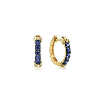 Gabriel & Co Bujukan Blue Sapphire Huggie Earrings in 14K Yellow Gold
