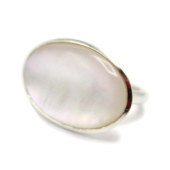 Ippolita Mother of Pearl and Rock Crystal Cabochon Ondine Sculptured Large Oval "Rock Crystal" Ring in Sterling Silver
