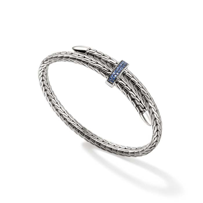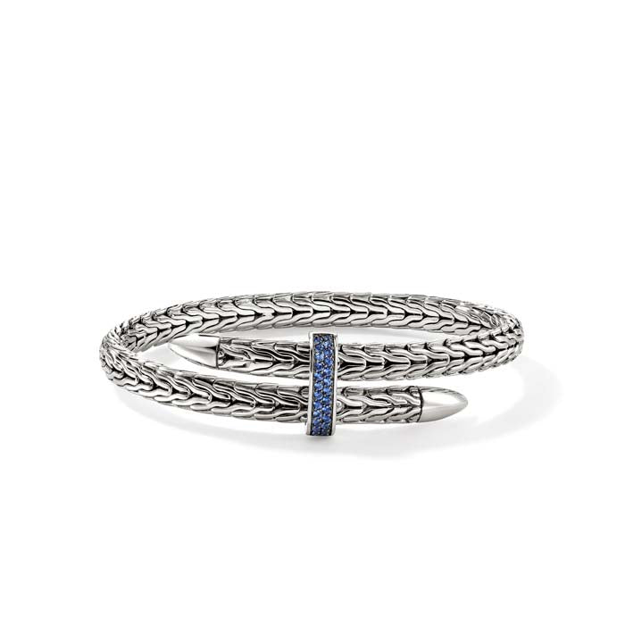 John Hardy Blue Sapphire Spear Flex Cuff Bracelet in Sterling Silver, Size Small
