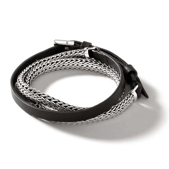 John Hardy Icon Black Leather Triple Wrap Bracelet in Sterling Silver