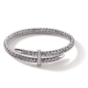 John Hardy Spear Diamond Pavé Flex Cuff in Sterling Silver - Size Medium