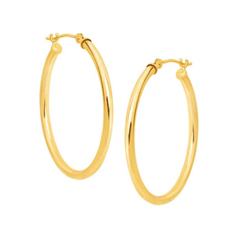 Mountz Collection 2mm x 30mm Round Tube Hoop Earrings in 14K Yellow Gold