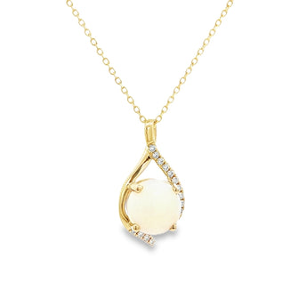 Mountz Collection 8mm Round Opal and Diamond Swirl Pendant Necklace in 14K Yellow Gold