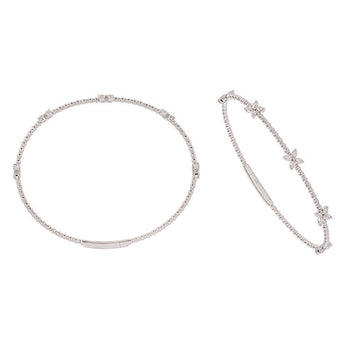 Mountz Collection Diamond Flower Flexible Bangle Bracelet in 14K White Gold