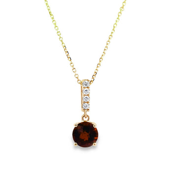 Mountz Collection Garnet and Diamond Pendant Necklace in 14K Yellow Gold