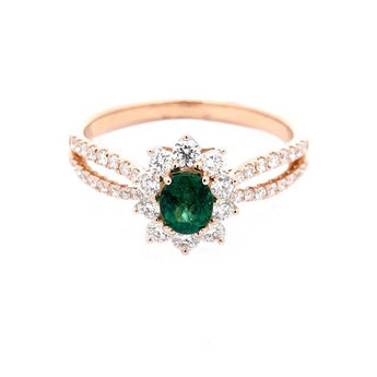 Mountz Collection Oval Emerald and Diamond Halo Ring in 14K Yellow Gold