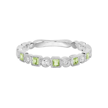 Mountz Collection Peridot and Diamond Stacking Ring in 14K White Gold