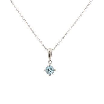 Mountz Collection Round Aquamarine Pendant Necklace in 14K White Gold