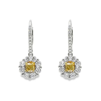 Mountz Collection Yellow and White Diamond Drop Earrings in 18K White and Yellow Gold