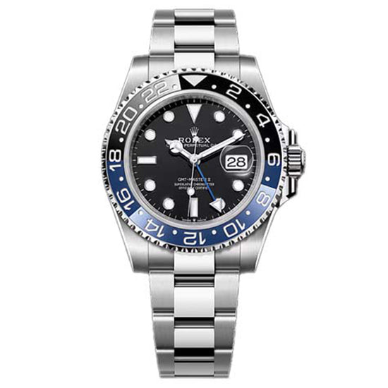 Pre-Owned Rolex 40MM GMT-Master II Oyster Perpetual Watch with Black Dial and Blue and Black Bezel and Oyster Bracelet in Oystersteel
