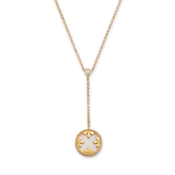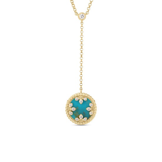 Roberto Coin Venetian Medallion Reversible Pendant Lariat Necklace with Turquoise, Mother of Pearl and Diamonds in 18K Yellow Gold