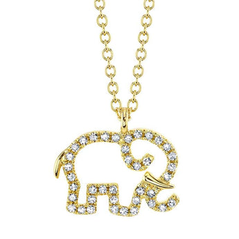 Shy Creation .09CTW Diamond Elephant Necklace in 14K Yellow Gold