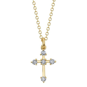 Shy Creation Diamond Cross Necklace in 14K Yellow Gold