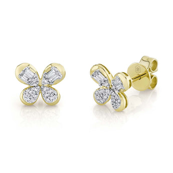 Shy Creation "Kate Collection" Diamond Butterfly Stud Earrings in 14K Yellow Gold