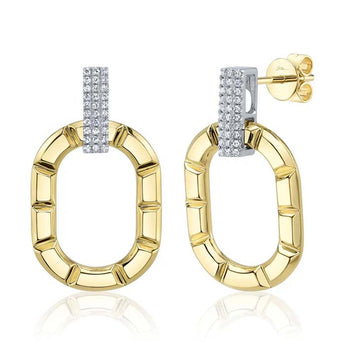 Shy Creation "Kate Collection" Diamond Pavé Oval Geo Cut Earrings in 14K White and Yellow Gold