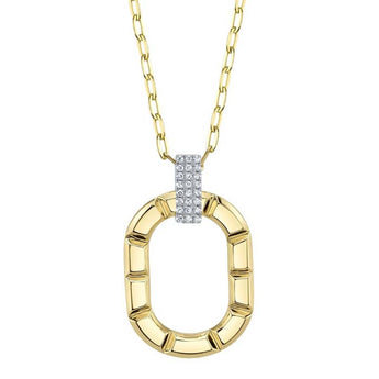 Shy Creation "Kate Collection" Diamond Pavé Oval Geo Cut Necklace in 14K White and Yellow Gold