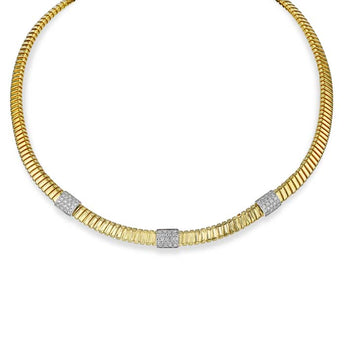 Simon G. Ribbed Diamond Station Choker Necklace in 18K White and Yellow Gold