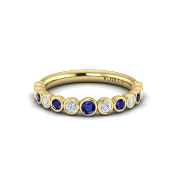 Vlora "Adella Collection" Sapphire and Diamond Bezel Band in 14K Yellow Gold