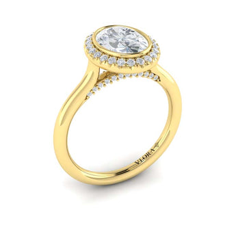 Vlora Regal Halo Oval Bezel Engagement Ring Semi-Mounting in 14K Yellow Gold
