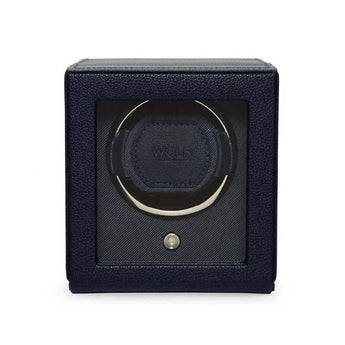 Wolf Designs Navy Blue Cub Single Watch Winder with Cover